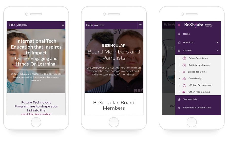 The besingular.com, International Tech Education that Inspires to Impact. i36 design to create design, develop and manage their online presence and digitally enhanced user experience.