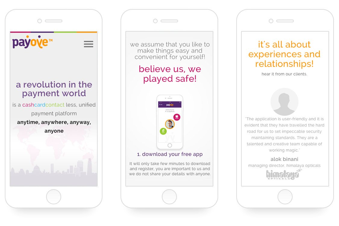 The payoye.com, an unified payment platform. We partnered with them to create design, UI development and manage their online presence and digitally enhanced user experience.